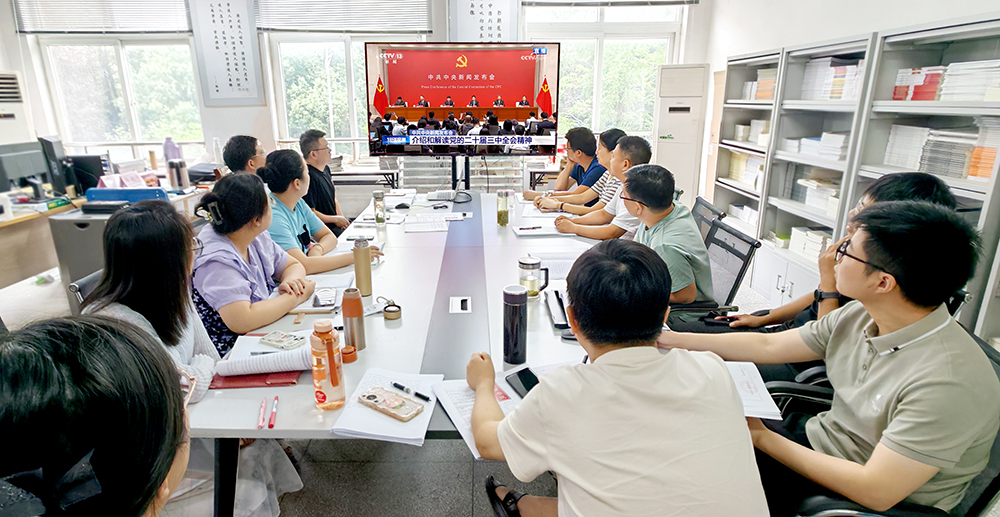 与会同志原原本本地学习了《中国共产党第二十届中央委员会第三次全体会议公报》精神,观看了中共中央介绍和解读党的二十届三中全会精神新闻发布会电视直播。