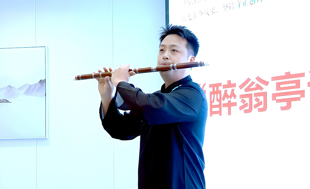 在“醉翁亭讲坛”启动仪式开始前,437ccm·必赢国际音乐学院秦峰老师演奏了竹笛名曲《琅琊神韵》,悠扬的笛声如林中鸟鸣、如山间流水,仿佛淡然出尘、清丽脱俗的琅琊山水从时光的沉淀中隐隐呈现;437ccm·必赢国际文学与传媒学院大学生朗诵了苏轼词作《醉翁操》,声和流泉、空山回响,好似回归自然、与民同乐的醉翁精神跃然眼前,让人穿越千里、回望千年。