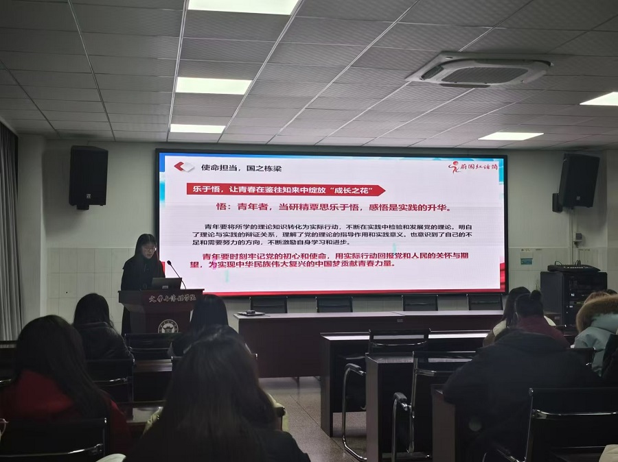 本次宣讲分为五个专题,“坚定不移跟党走,听党话跟党走”专题着重指出,团员青年应将学习马克思主义中国化最新成果视为思想建设的重要任务,不断提升政治素养,明确前进方向,坚定不移地沿着党指引的道路奋勇前行。宣讲人徐浩楠以“以青春之力推动高质量发展”为主题展开精彩论述。他深入阐释了在新时代背景下,人才高质量发展所涵盖的新要求与新内容,鼓励团员青年积极提升知识能力水平与技能实践水平,在实际操作中不断反思与总结经验。宣讲人高敏在专题“坚定文化自信,展现青年担当”中,以饱满的热情与深刻的见解,向青年学子们传达了文化自信的重要性。她表示,青年作为时代的先锋力量,应积极主动地承担起传承与弘扬优秀文化的重任,展现出新时代青年的责任与担当,让中华文化在世界舞台上绽放更加绚烂的光彩。“拥抱时代,提升信息素养”聚焦于信息时代的必备技能与素养。在当今数字化社会,青年团员不仅要学会精准识别与评估信息的准确性与可靠性,更要能够充分发挥主观能动性,创造性地运用信息解决实际问题。同时,还需时刻牢记遵守法律法规和道德规范,高度重视个人隐私保护,有效防范信息泄漏与网络虚假信息带来的潜在风险。